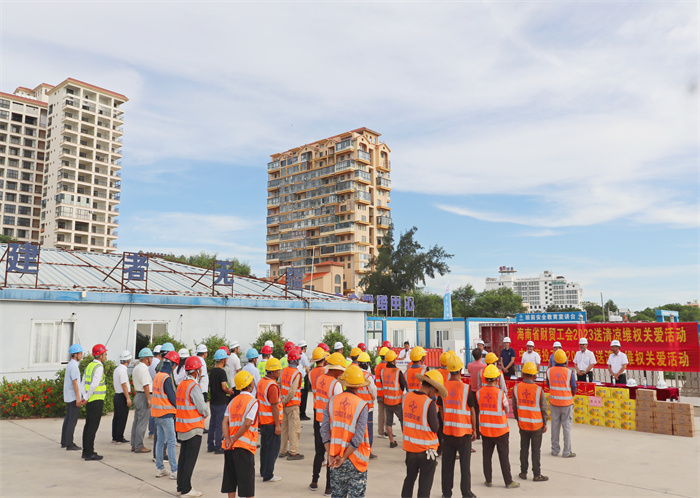 炎炎夏日送清涼,份份關(guān)懷暖人心。6月19日,海南省財(cái)貿(mào)旅游煙草工會(huì)常務(wù)副主席童智忠到東方八所中心漁港項(xiàng)目開展送清涼維權(quán)關(guān)愛活動(dòng),持續(xù)深化“我為群眾辦實(shí)事”實(shí)踐活動(dòng),切實(shí)做好夏季防暑降溫工作,維護(hù)職工安全健康權(quán)益。中交海投黨委副書記、工會(huì)主席楊凱陪同參加慰問(wèn)活動(dòng)。